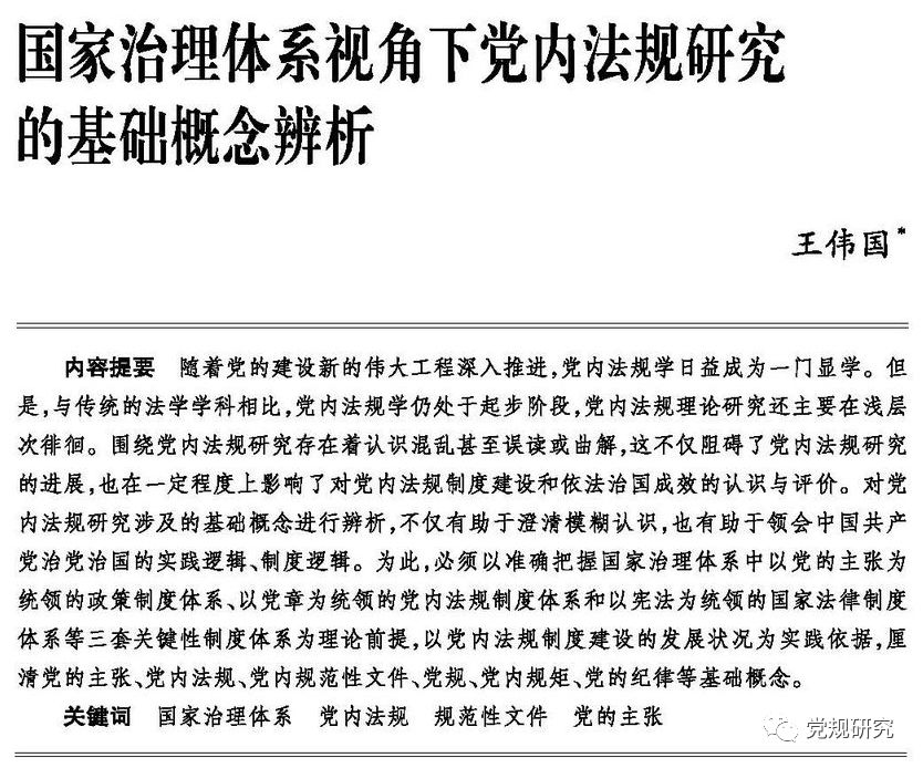 王伟国:国家治理体系视角下党内法规研究的基础概念辨析