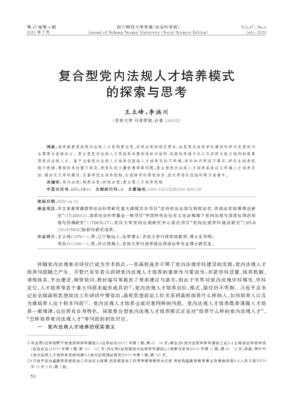 王立峰、李洪川:复合型党内法规人才培养模式的探索与思考